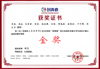 2018年“创青春”金奖获奖证书 2019年“挑战杯”特等奖获奖证书