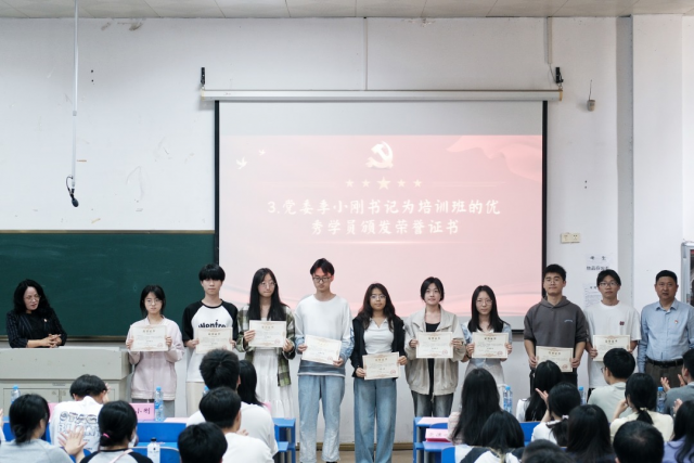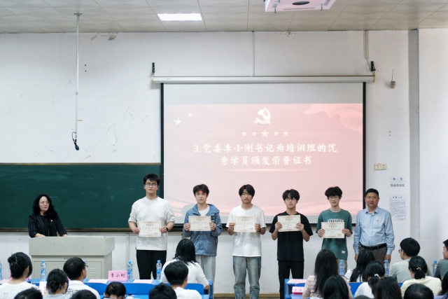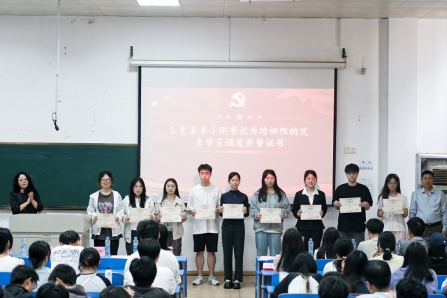 2025年4月29日12:30, 御书屋 于麦庐大学生活动中心D101举行分党校第二十四期入党积极分子培训班结业典礼。出席典礼的有学院党委书记季小刚同志、党委副书记匡琳同志、学工办主任兼本科生第二党支部书记钟英娥同志、本科生第五党支部书记陶丽同志、本科生第三党支部书记陈菲同志、本科生第一党支部书记邹璐同志。典礼由匡琳同志主持。