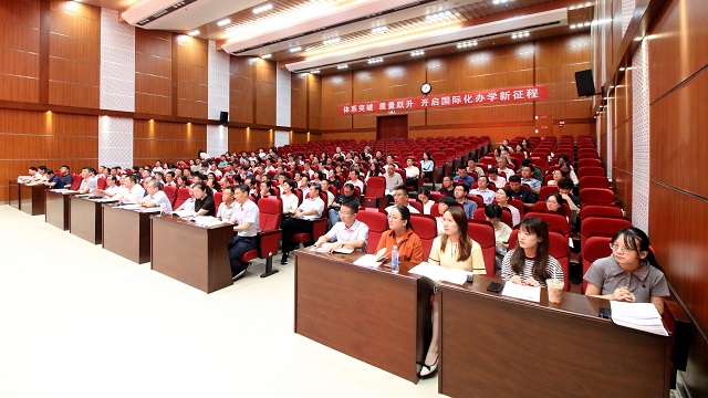 On August29,JUFE held a conference on internationalization in education. The conference,themed “System Breakthrough, Quality Leap: Embarking on a New Journey of Internationalization,” served to summarize JUFE’sexperience in internationalization, clarify future development goals and pathways, build consensus to empower JUFE’shigh-quality development through high-level opening up.